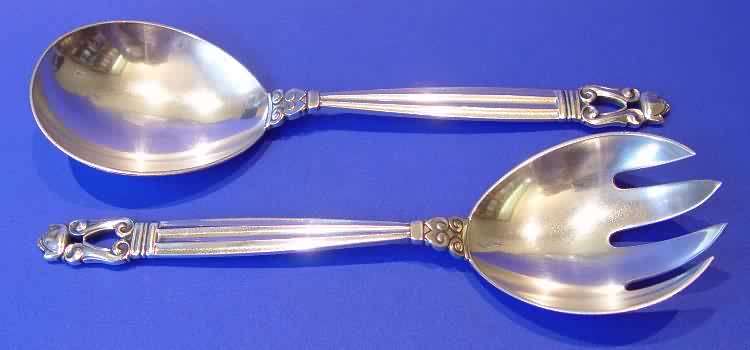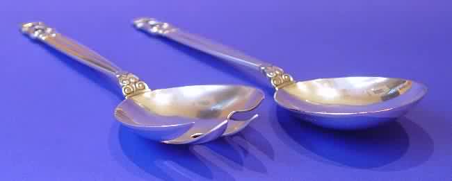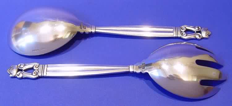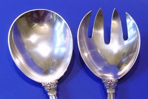 Georg Jensen silver "Acorn" salad servers.