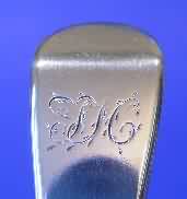 A pair of George IV silver serving spoons.