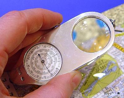 Silver Map Measurer, Magnifying Glass & Pencil.