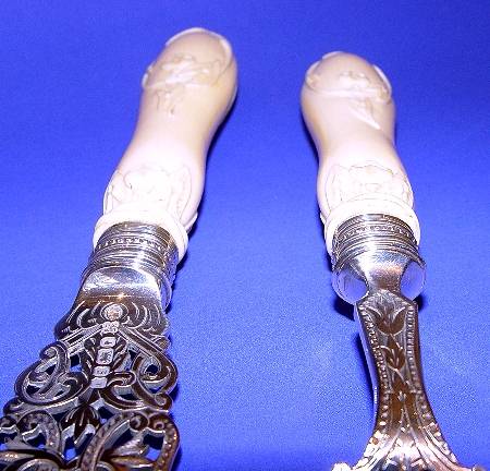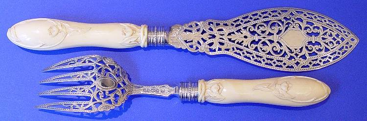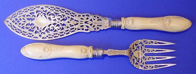 A Pair of Victorian Silver & Ivory Fish Servers in a Fitted Case.