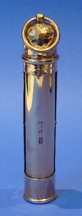 Edwardian Silver Gilt & Mother of Pearl Travelling Thermometer.
