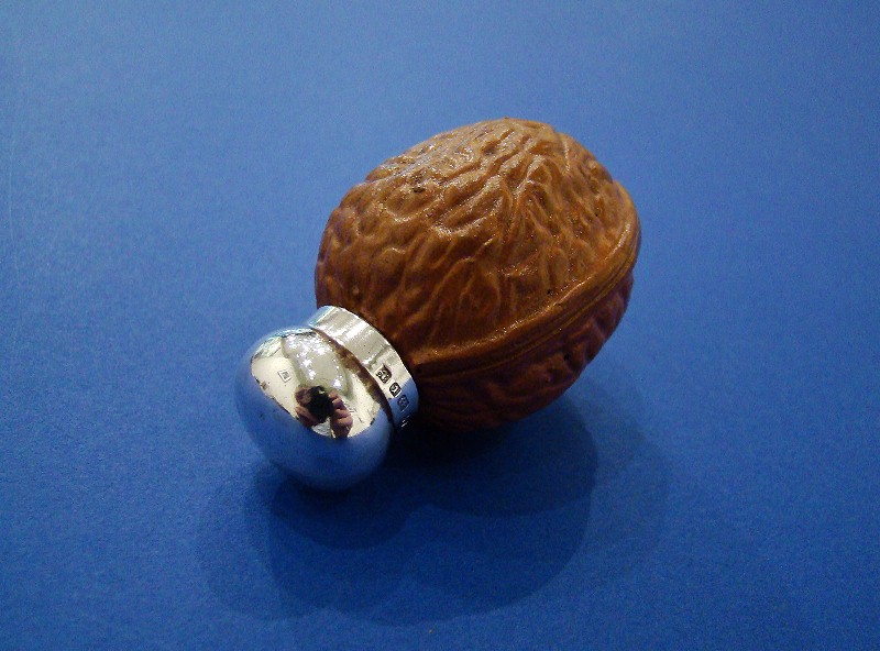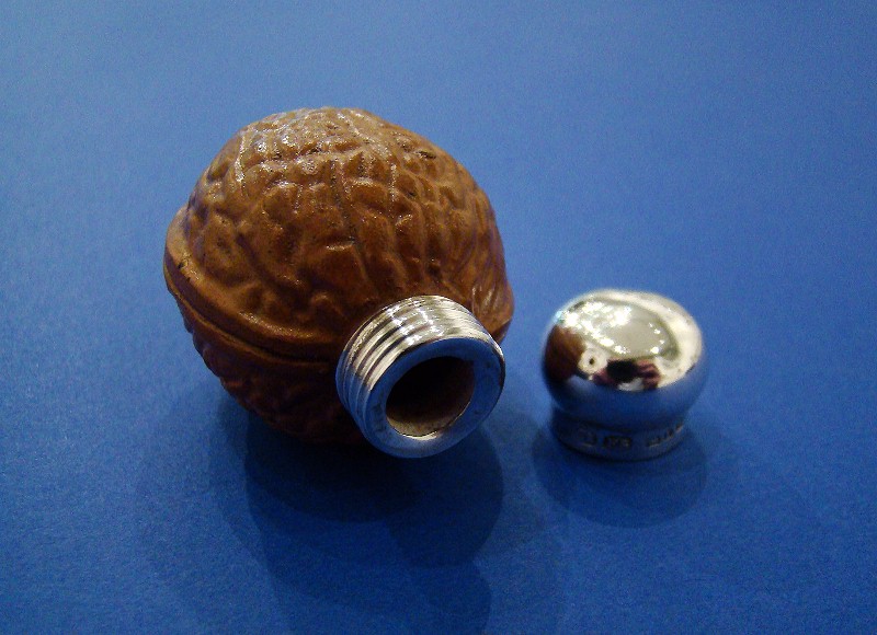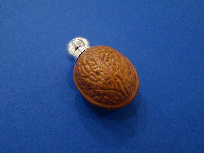 Victorian Silver & Porcelain 'Walnut' Scent Bottle