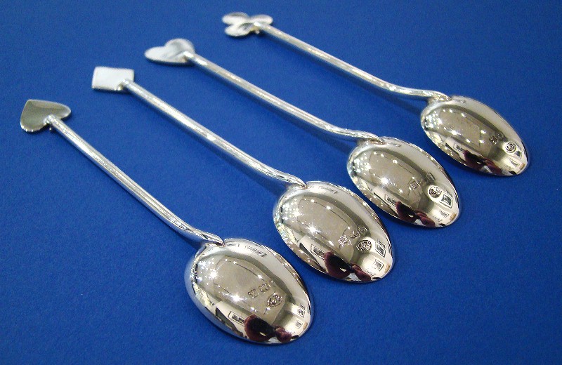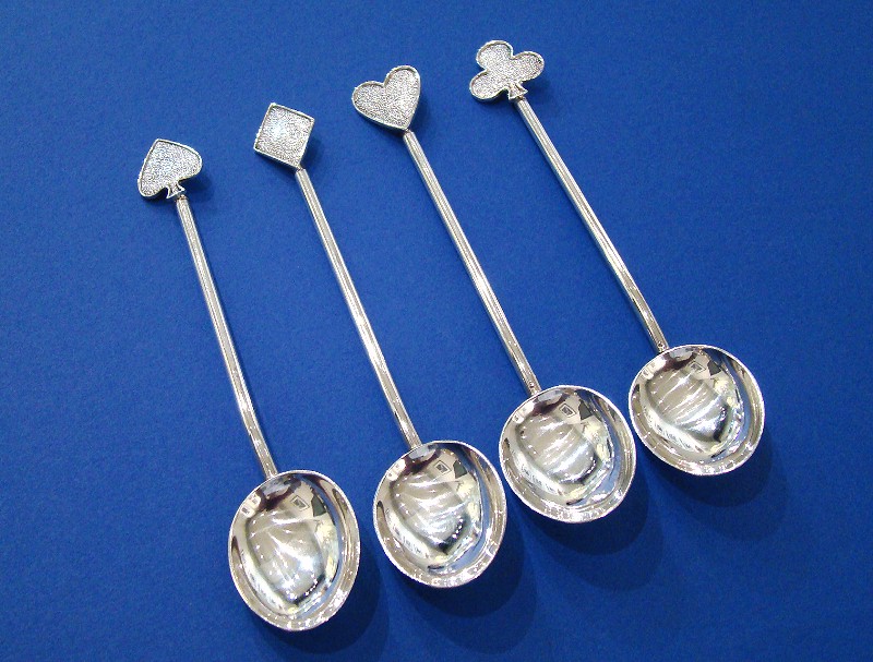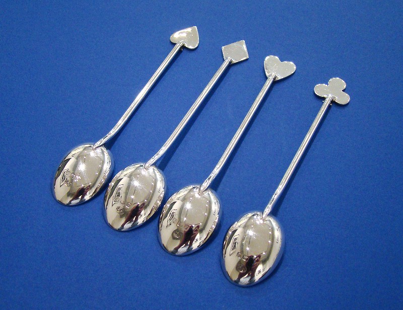 Set of 4 Silver 'Playing Card Suits' Coffee Spoons