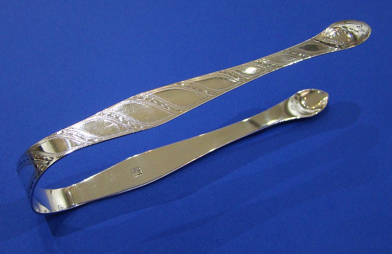 George III Silver Bright-cut Sugar Tongs
