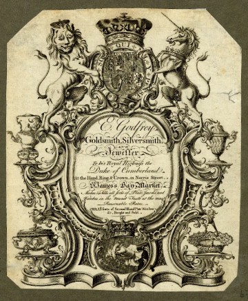On her trade card Elizabeth Godfrey describes herself as “Goldsmith, Silversmith, and Jeweller, [who] makes and sells all sorts of plates, jewels, and watches,