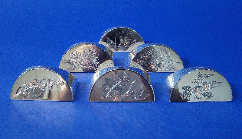 Set of 6 Silver 'Flowers' Menu/Name Place Markers