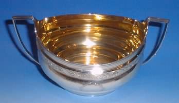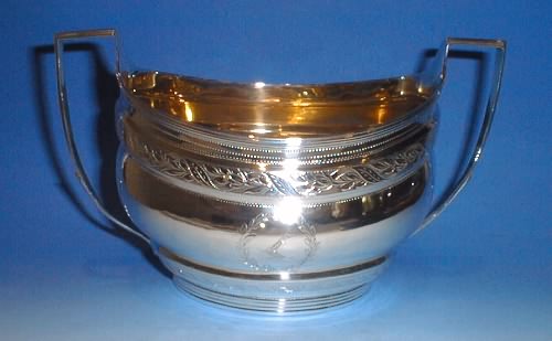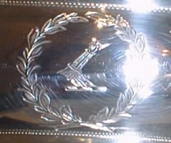 In the centre a crest is engraved within a wreath of laurel leaves, on the back the wreath has been left empty.