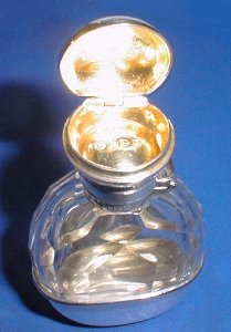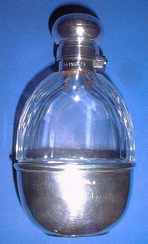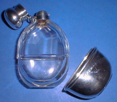 A Victorian silver and glass hip flask with a pill box.