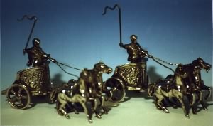 Two Dutch silver miniatures of Centurions with chariots and horses.