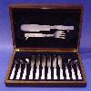 A set of 12 Victorian silver & ivory fish knives & forks in a fitted case.