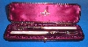 Victorian silver & mother of pearl butter knife & two pickle forks in a fitted case.