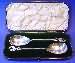 A pair of Edwardian silver "mistletoe" serving spoons in a fitted case.