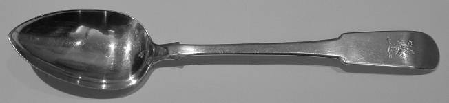| 140. | Newcastle silver Fiddle pattern Basting spoon, 1794 by Thomas Watson with contemporary dragon crest. L-30cm; W-114g. ~ This is a superb Newcastle piece; it is very clean indeed with again a very low reserve. Est. £250-350. | £100 |