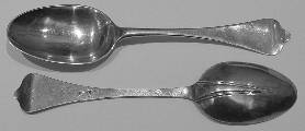| 143. | Pair of Scottish silver Old English pattern tablespoons, Edinburgh 1770 by Alexander Gairdner with a sphinx crest. L-22cm; W- 132g. ~ these are a lovely pair of spoons that cannot be faulted, good marks, bowl & heavy. Est.£150-170. | £150 |