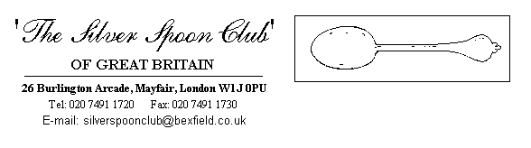 26 Burlington Arcade, Mayfair, London, W1J OPU. Tel: 020 7491 1720 Fax: 020 7491 1730 Email: silverspoonclub@bexfield.co.uk