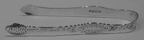 | 46. | George III silver bright-cut sugar tongs, London 1802 by Peter, Anne & William Bateman. L-14cm; 33g. ~ a super pair of tongs, lovely decoration. Est. £45-55. | £38 |