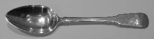 | 33. | Scottish silver Celtic-Point tablespoon, Edinburgh 1825 by William Peat with a single drop. L-23.5cm; W-79g. ~ thick gauge for a Scottish spoon. Est. £30-40. | £20 |