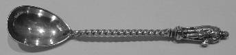 | 49. | Victorian silver-plated mustard spoon with figure finial, circa 1890's by Elkington & Co. L-9.7cm. ~ is it Sir Walter Scott?. Est. £10-15. | £10 |