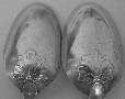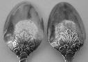| 73. | Pair of silver-gilt Hanoverian picture-back of scrolling leaves teaspoons, London c.1745 by Richard Beale. L-12cm; W-23g. ~ fantastic quality with crisp detail. Est. £40-60. | £40 |