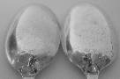 | 63. | Pair of George III silver shell-back Hanoverian teaspoons, London c.1765 by Ebenezer Coker. L-11.4cm; W-19g. ~ old repair to one stem, both with a couple of knocks to bowl. Est. £20-30. | £16 |