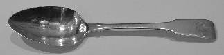 | 71. | George IV silver fiddle pattern tablespoon, Birmingham 1821, by Edward Thomason. L-22.5cm; W-65g. ~ unusual for Birmingham, good condition and marks. Est. £50-60. | £50 |
