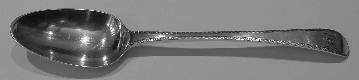 | 83. | George III silver bright-cut Old English pattern tablespoon, London 1790 by Peter & Anne Bateman. L-21.7cm; W-66g. ~ a good spoon & marks. Est. £50-70. | £50 |