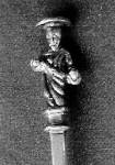 There the matter rested until more recently I acquired a copy of the 1935 Ellis sale catalogue. Lot 60 was a Seal Top, pricked 1652 but probably earlier, with a good set of the same marks clearly photographed and described simply as a fleur-de-lys. The stem marks showed greater wear on the same side as those on my Apostle, but this time the bowl mark showed greater wear on the other side. The 'twiddly' bits of the fleur-de-lys are plainly to be seen on the side where they have disappeared on my spoon and in the Jackson illustration. Clearly this is indeed a straightforward fleur-de-lys mark.