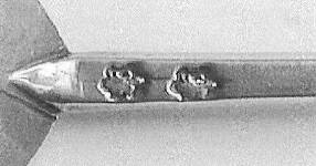 The marks on my spoon seemed rather less worn than those in the photograph that is included in Jackson, so from time to time I would look at them, wondering whether I might be able to identify what the other half-device is and thus possibly get a step closer to an ascription. However, the more I looked at the marks, the more I felt that this was probably simply a fleur-de-lys punch distorted by more wear on one side than on the other. (I rather think that fellow member Vic Bowman, through whom I got the spoon, felt the same.) But the bowl and the stem marks on my spoon and the marks illustrated in Jackson all lacked the fleur-de-lys detail on the same side, so I could not be absolutely sure the difference was not in the original punch rather than the result of subsequent wear.