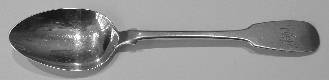 | 69. | Chester silver fiddle pattern teaspoon, 1834 by John Sutter. L-14cm; W-15g. ~ good marks, minor knocks to bowl. Est. £30-40. | £28 |