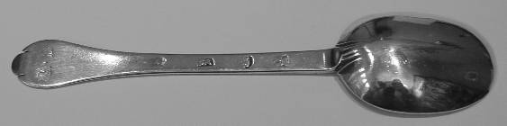 | 78. | Queen Anne silver Dognose pattern tablespoon with a bead & reeded ratail , c.1703 by Spackman, prick-dot 'IB' over 'IC' over '1703'. L-19.6cm; W-44g. ~ reasonable condition, marks a little worn, date letter unreadable. Est. 300-325. | £290 |