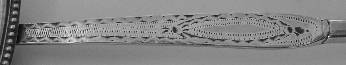 | 67. | Irish silver bright-cut Celtic point pattern tablespoon with a prick dot bow on the point, Dublin 1793 by 'J.S'. L-23cm; W-56g. ~ reasonable condition, marks a little worn. Est. £65-75. | £58 |