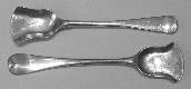 | 141. | 2 matched George II silver Hanoverian pattern salt shovels, c.1750. L-8.5cm; W-13g. ~ marks unreadable, condition reasonable for age. Est. £50-60. | £44 |