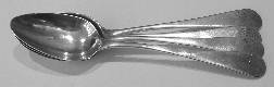 | 142. | Set of 4 George III silver Old English pattern teaspoons, London c.1797 (type 2 double duty mark). L-13.5cm; W-51g. ~ maker's mark unreadable, minor wear to bowl tips. Est. £30-40. | £30 |
