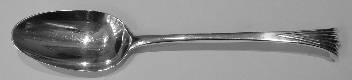 | 132. | Aberdeen silver fiddle pattern dessert spoon, c.1820 by George Booth. L-17.3cm; W-28g. ~ knocks to bowl and polished, marks good. Est. £40-50. | £40 |